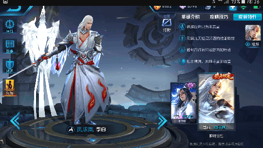 排在第二位的英雄就是李白了。李白是一个拥有五段位移的英雄,并且还有帅气的外表,深受广大男生的喜爱,操作好的李白可以杀人于无形,是团战时收割战场的利器,后期李白大招的伤害更是恐怖,可以很好分割敌方的阵容让敌方输出没有良好的输出环境。他也是打游戏时的带妹神器哦。