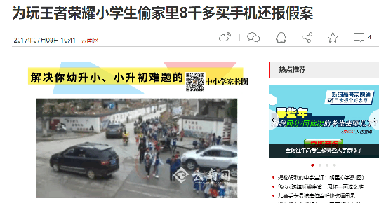 与此同时,类似于“小学生为玩王者荣耀偷拿父母钱”的资讯也出现在了各大网站和论坛。