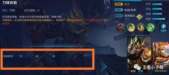 关羽的大招杀伤力是非常强的,会玩的关羽往往能凭借着大招改变战局,但是缺点就是大招的CD略长,释放了就需要等很长一段时间。