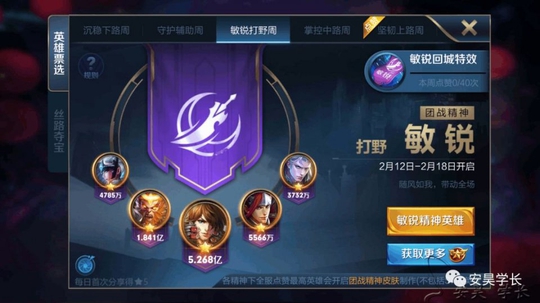 相信大家也是看了以上了,学长只是给大家展示了两个平台,那么第一名是怎么计算的呢?其实是计算四个平台的总票数,IOS(两个平台)、安卓(两个平台),这就是大家摸不着头脑的地方了,那么现在大家应该就知道了,其实我们游戏中只是一个平台,在里面的第一名并不是真正的第一名,那么这五位英雄到底是哪些呢?