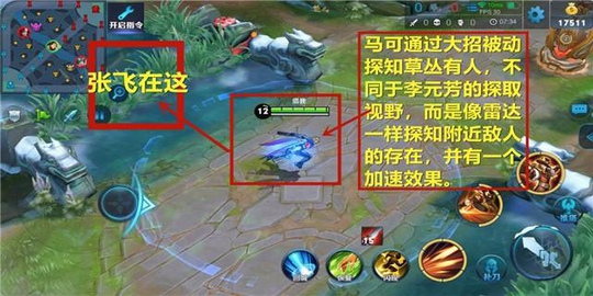 解析:三技能同一技能一样都是可以触发法球效果,并且三技能的被动可以探知草丛的敌人,从而使马可对环境有着一个预警能力,确保自身安全。另外大招可以通过二技能以及闪现达到位移的效果,从而更容易接近残血的敌人来进行收割。