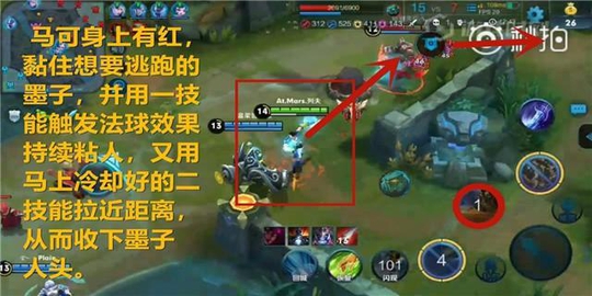 解析:二技能是马可可以秀翻全场的核心技能,有着二技能的马可非常的灵活,走位让敌人捉摸不透而且非常难捉,也可以在红buff的加持下,不断的风筝敌人,从而起到消耗的作用。