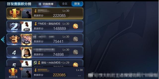 另外就是土豪玩家贴的这张图,也在一定程度上证明了事件的真实性。贵族积分已经22万多了,这里还有一个亮点就是他的好友名单里面有剑仙的名字,剑仙应该大家都很熟悉,是王者荣耀主播里面比较出名的一个。能和他扯上关系的,相信也就是真土豪了。