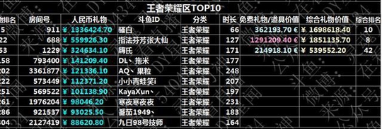 同样2月份有网友爆出了斗鱼1月份张大仙综合实力是王者荣耀区的第一名,全站第8名。最让人服气的是免费礼物是129万,免费礼物这个数量远超过其他同行。