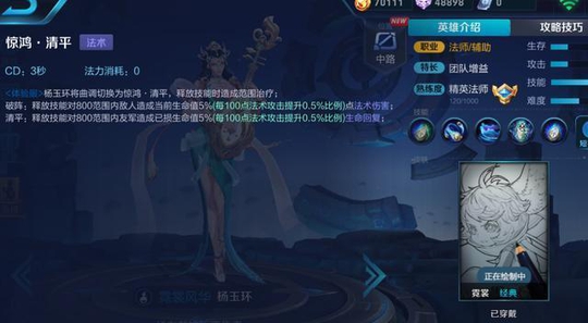 杨玉环的特性和蔡文姬有点像,在辅助状态下甚至比蔡文姬还好的地方就是可以给小兵都能补血,可以这么说杨玉环只要是自己人都给你奶。