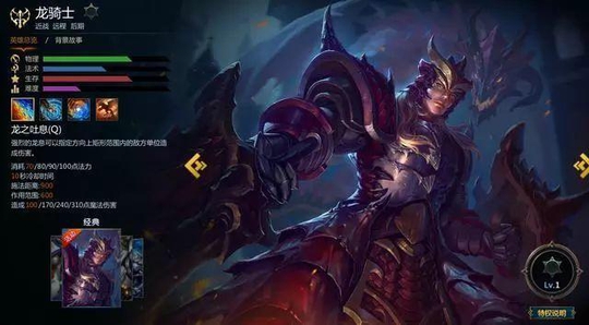 王者荣耀龙骑士是一个史诗级的皮肤售价2888点券,但是小编玩那么久基本没有遇见有人用过这款皮肤。然而英魂的这款龙骑士就是原画,人物模型塑造的非常棒,在这款皮肤上英魂看来是略胜一筹。