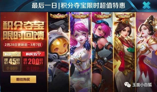 点券夺宝折扣活动将在今晚12点结束,距离下一次开启可能需要一段时间,以前是三个月开启一次,现在是一个月开启三次。但这次节日过后会有所缓解,而且新皮肤上线也不会如此频繁,不然吃土都买不起了。