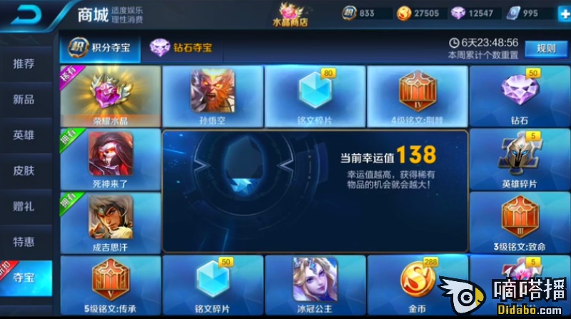 王者荣耀夺宝抽奖一定要12点,600点券,英雄、皮肤都中了!