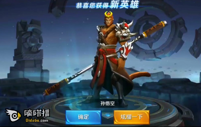 买到英雄,再抽两次,一次金币,第二次就抽到了英雄孙悟空,已经显示拥有了,真是太高兴了!