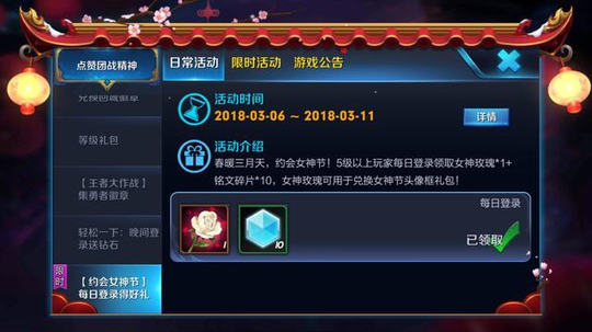 下面我们来看看王者荣耀的女神节活动吧。