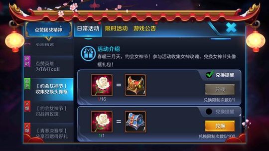 3、收集女神玫瑰兑换女神节头像框以及钻石符文碎片等物品,对于爱收集头像框的小伙伴们也算是一种福利吧。