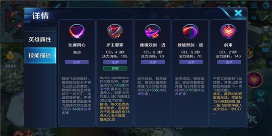 解析:干将莫邪释放二、三技能时,左右两侧都会各释放出一把飞剑。双剑呈对称状在一点交汇,造成同等伤害。这是干将莫邪有高额爆发输出的背景条件,因为在双剑交汇点能够造成双倍伤害。此外,干将莫邪在普攻时,会使用飞剑挥砍敌方,造成高额法术伤害。这是干将被近身、技能又处于冷却状态下站撸的资本。