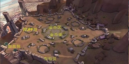 五军对决的经济来源和其他模式的不同,不仅仅通过击杀敌方英雄来获取经济。特别的是可以站在图中指定的圈中持续获得金钱,或者通过触碰玉仔(龟驮玉一样的生物)来获得高额经济。值得一题的是,魔道之玉分布在泉水的4周,一出泉水便可以看到。常常被忽视的是,魔道之玉除了提供经验和经济以外,还会有几率提供一个10%的攻击加成BUFF。5个BUFF刷新点刷新重生之玉,可以在60秒内复活阵亡的英雄(70%血量),但是60秒后如果没有被使用的话就会失效,同样,重生之玉也提供大额经济。所有的场景内野怪是不会攻击的,也就意味着英雄打野是不会受到伤害的,但是可以被吸血和叠加印记。