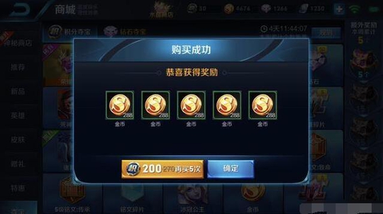 但是并不是每个人的运气都是那么好的,有些玩家在积分夺宝里面进行五连抽,居然抽到了五个都是288金币的奖励,由于金币可以直接通过游戏来获取,不知道此时这位玩家的心里阴影有多大.