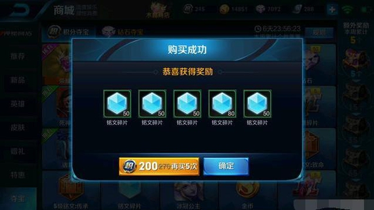 但是也别伤心,毕竟你比这个玩家好,这个玩家抽到了五个都是铭文碎片的奖励,而且每个都是50铭文碎片,加起来只能够购买两个三级铭文,这位玩家真是运气不佳,能够抽出这个奖励,小弟真是佩服佩服!