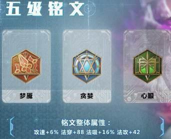 法师符文也是多种多样的,最简单的就是使用通用铭文,推荐是88穿透加吸血,也就是梦魇心眼加贪婪。
