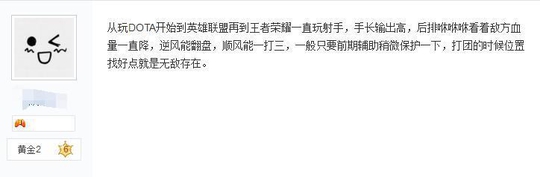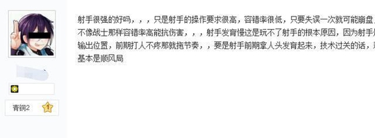 上面都是萌新玩家的表现,而这个玩家的评论表示应该是个老司机了,能举出射手的一些优缺点来。
