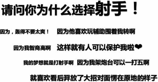 那么小伙伴 ,在射手被人嫌弃的赛季,你们有没有自己非要选择射手的理由呢。