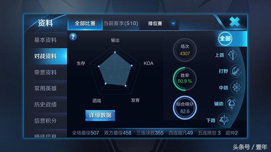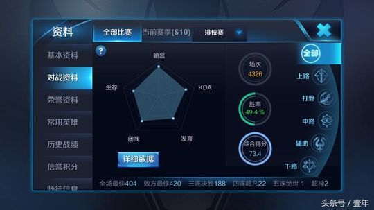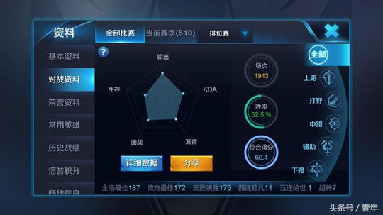 下面是我4个朋友的战绩图,大家来猜一猜分别是什么段位,喜好什么位置。