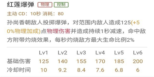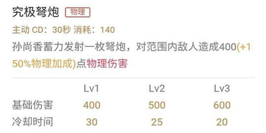 数据解析:孙尚香的二技能使用频率不高,有时候使用二技能反而会错过击杀敌人的机会,所以选择次加点。