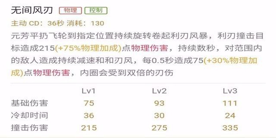 解析:李元芳将飞轮扔到指定地点卷起风暴,持续数秒,对范围内的敌军造成持续减速和伤害。位于飞轮内圈的敌军会受到双倍的刃伤。李元芳的大招是一个范围性的技能,在团战之中使用能够很好地分割战场逼迫敌方的走位。同时该飞轮可以叠加标记的层数,能够快速引爆一技能的印记对敌方造成高额伤害。