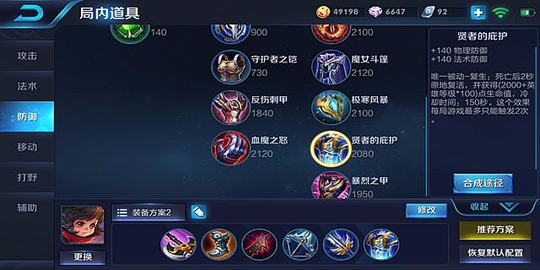 李元芳的定位是射手,在后期双方输出都很高的情况下很容易被敌方秒杀。贤者的庇护能够为李元芳提供一次复生的机会,提升李元芳的容错率。