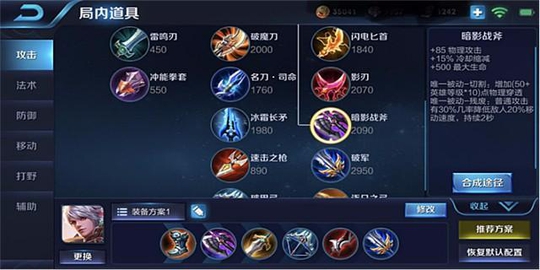 暗影战斧提供85物理攻击,15%冷却缩减,500最大生命和物理穿透,普通攻击有30%几率降低敌方20%移动速度2秒。配合被动能在前中期拥有足够的物理穿透,提供伤害的同时让技能更快冷却。