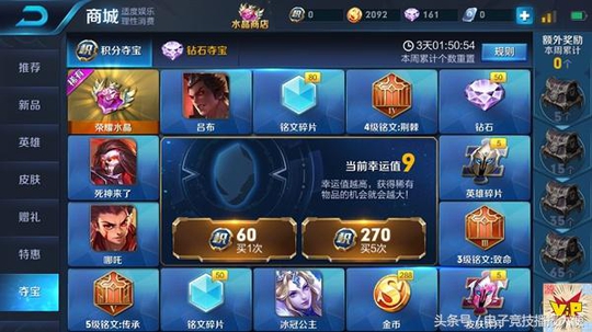 另外,因为充值点券会有积分赠送,这120积分可以用来点券夺宝2次。现在奖池中包括吕布和哪吒,曹操的死神来了以及雅典娜的冰冠公主,能抽到这些东西其实也很不错的。当然,使者还是希望大家能抽到荣耀水晶的,毕竟水晶商店里面的才是极品啊。而且这是充值送的积分,所以用来夺宝也是很划算的。