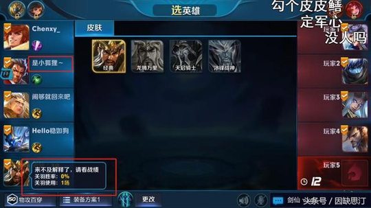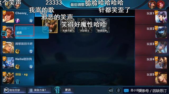 要知道杨幂的王者荣耀昵称都包括小狐狸~这4个字,而在这局比赛中剑仙竟然开了小号特意和杨幂小号开黑!果酱这时不得不为对面星耀分段的玩家感到可怜,毕竟被明星和国服第一李白虐菜实在太恐怖!但随后剑仙怕是要给游戏增加难度,竟然最后一手选择了0胜率的关羽!
