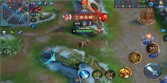 解析:达摩拥有较强的续航能力以及较高的清野效率,并且一技能可以让达摩在野区和线上频繁游走,四级之后的达摩gank成功率很高,所以推荐达摩携带惩击打野。达摩有机会gank时,可以多去线上gank,配合队友击杀敌人,尽快拉大经济差距;如果没有机会gank,则可以配合队友入侵敌方野区,四级之后的达摩在野区遭遇敌人也是毫不心虚的。