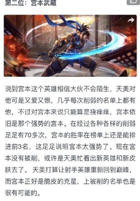 代代版本削宫本,似乎成为了很多玩家调侃的对象。但是为什么这位英雄总是这么惨呢?尽管被削弱多次,还是能够在胜率中保持较高的层次。为了射手英雄重回巅峰,这些又肉又能输出的战士就免不了牺牲了。