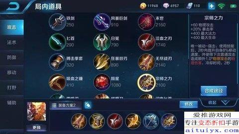 解析:孙悟空依靠被动暴击输出,出装上以暴击装最佳,搭配适量吸血装备,中后期可以不再回城。孙悟空虽然后期强势,但往往害怕被秒杀,所以保命装备不能少,名刀或复活甲在大后期替换最佳,前期主要是提升伤害。上述两套装备,都有一件攻速装,可以让孙悟空的连续普攻更加顺滑。