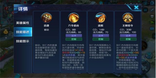 解析:狄仁杰朝指定方向甩出六道令牌,对命中的目标造成物理伤害,法术伤害,还有减速。使用之后会向技能使用方向的反方向位移一小段距离。这个技能对线的时候很实用,可以快速清兵线,也可以等敌人靠近你的时候再施放,不但可以拉开距离,还能造成很高的伤害,因为近距离施放一技能可以让多张令牌命中敌人,提高对目标的伤害。