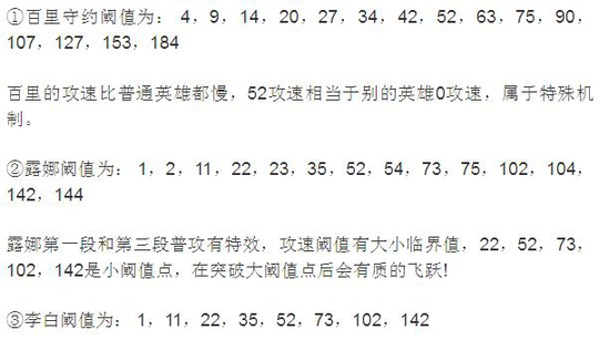 除了我上面说的大部分英雄以外,也有一些英雄的攻速阈值是和其他英雄不同的,比如部分射手,从网上的资料可以看到。马可波罗,李元芳的攻速阈值和其他英雄差距比较远,主要是因为马可波罗攻速和技能挂钩,李元芳就不知道是什么原因了。
