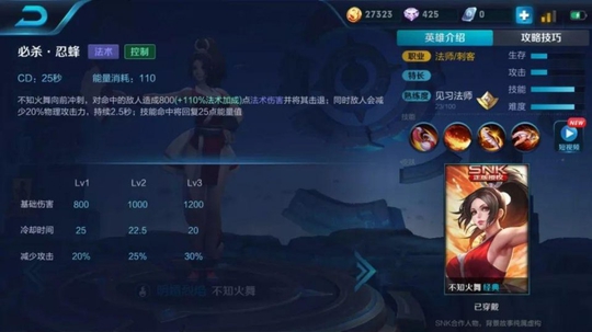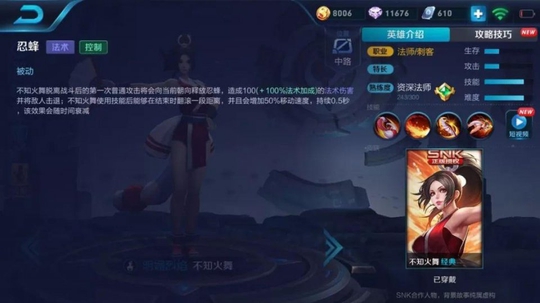 不知火舞最大的优势在于她的灵活性,被动技能的存在,使得她释放技能之后可以朝着任意方向翻滚一次,这让她不管在追残血还是逃生上都显得游刃有余。