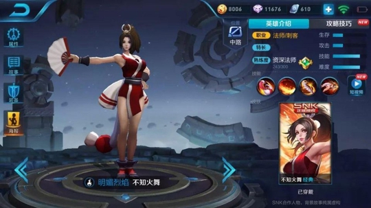 好了,言归正题,火舞这个英雄算是KPL赛场上的常客,经常后期一扇子扇掉对面脆皮三分之一血量,成形的火舞有着非常不错的输出,这和这个英雄本身的法师型刺客的定位有关。