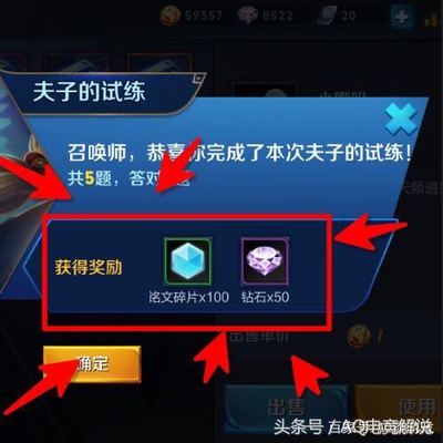 这个道具就是夫子的试炼,这个道具是通过多人游戏结算掉落,后面标注的还是掉落限制为一个,在这里所指的一个意思是游戏结束后掉落的时候只能掉落一个,而并不是只能掉落一个。刚开始的时候Q哥也以为这个道具只能掉落一个,本以为极其珍贵,打开后会获得一些英雄或者碎片以及皮肤什么的,谁知道打开以后就是一堆不值钱的玩意,最多可获得50个钻石和100个铭文碎片,也就是说每答对一题可获得20个铭文碎片和10个钻石。