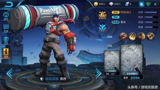 这款属于苏烈的皮肤,名为超级英雄。是玩家们通过内部渠道曝光出来,据悉是“团战精神”的专属皮肤。由官方所策划的团战活动,通过一个多月的投票来决出代表五个位置的英雄。特别是在最后关头,上路苏烈实现完美的逆袭,一举反超花木兰,赢得最终团战皮肤的资格,预计会在开黑节当天上线。然而,这款皮肤的可信度还是有待考证,毕竟天美还没有进行官宣。