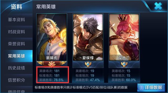 从英雄上线到现在也只是上线不过10天,该玩家已经拿着他不超神中。除了这个版本比较弱势的夏侯惇胜率比较底,这名玩家估计是玩小号上去的。虎这名英雄是很强势的,但要看在手里了。