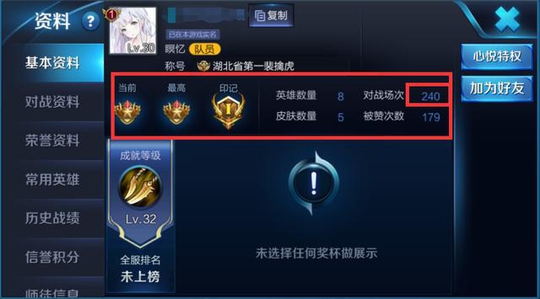如果你觉得100场上个钻石牛逼,那240场上荣耀小编觉得不是大部分玩家能做到的吧?王者荣耀这个游戏也不充个v8才能上王者的,该玩家也只是充钱买了赔钱虎的皮肤,240场照样上荣耀。当然其实充钱只是个人爱好,自己喜欢就好。