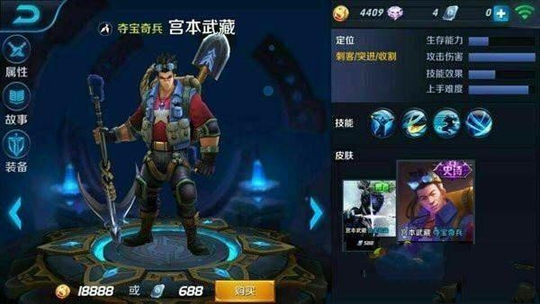 这皮肤在的时候宫本大叔还是很强的 可以说现在宫本大叔也是一打三没问题,这款皮肤是个合作款感觉画面感十分舒服。品质史诗级别。