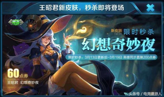 结果,在花木兰新皮肤刚上线不久,今天凌晨王者荣耀毫无防备的又要上线一款新皮肤,还是6元秒杀皮肤,王昭君的幻想奇妙夜。
