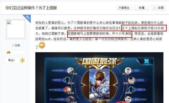 王者荣耀: 玩家留住国服最强, 上演一部宫心计? 惨被发帖曝光!