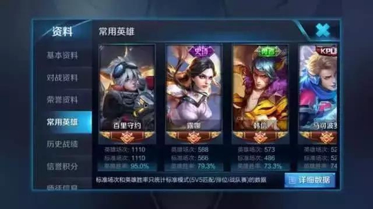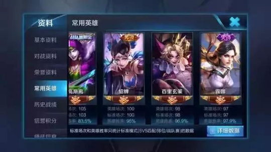该玩家发常用英雄的几个图,都是100场次左右的英雄战绩,胜率都是95%左右。虽然胜率挺高,但是这样的场次相对大神来说确实略少。