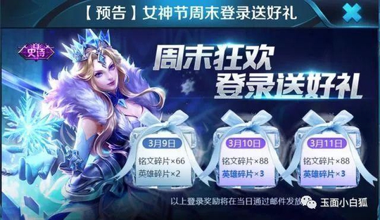 今日资讯:正式服从3月9日开始,连续三天登录,总共可领取8个英雄碎片,这完全是福利活动,相比之前可大方多了,记得一定要参加哦。