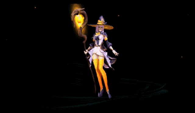 魔女挥舞古木法杖,朝指定位置释放魔法能量, 闪耀的光效 与魔法主题非常贴切!