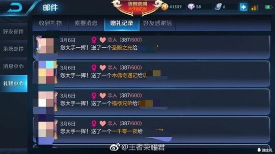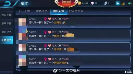 王者荣耀是一个需要团 队合作的游戏,因此带有很强的社交性。有很多人在这个游戏里找朋友找CP。有一个玩家就找到了一个CP,然后天天送她皮肤。