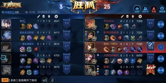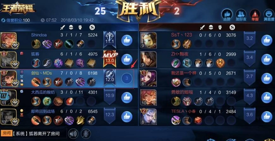 不过这一把有点尴尬,剑仙的战绩是7-0-8,但是剑仙这一把居然不是MVP,而是一个战绩不如剑仙的玩家拿到了MVP,说起来也是有点迷,王者荣耀这个游戏的评分系统确实是越来越让人看不懂了。