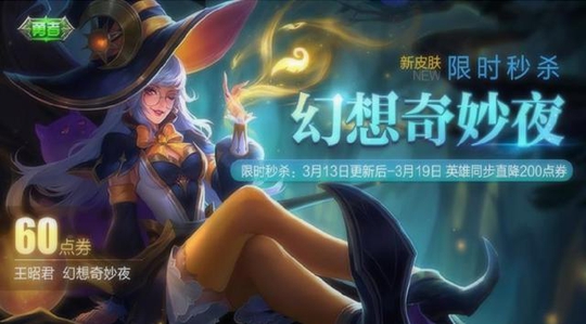 是的,你没看错,不要688,不要288,只要6块钱,幻想奇妙夜带回家。这波福利,你觉得还可以么?其实之前也有过6元的皮肤秒杀,分别是墨子的进击墨子号、达摩的拳王和李元芳的黑猫爱糖果。本来小编还以为今年女神节会如去年一般出6元皮肤的返场,没想到天美直接憋了个大招,上了新的6元皮肤。