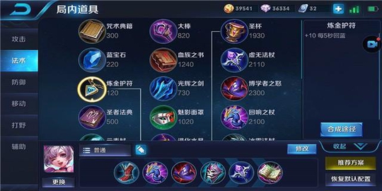(Tip:小乔的技能前期蓝耗较高,担心蓝量不够用的话可以在出门时先买两个120金币的炼金护符就足以,不需要出圣杯。)